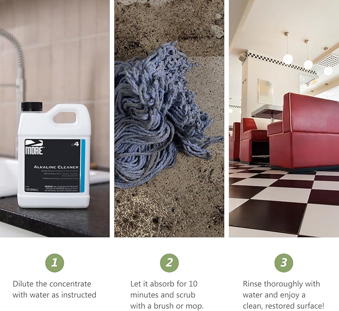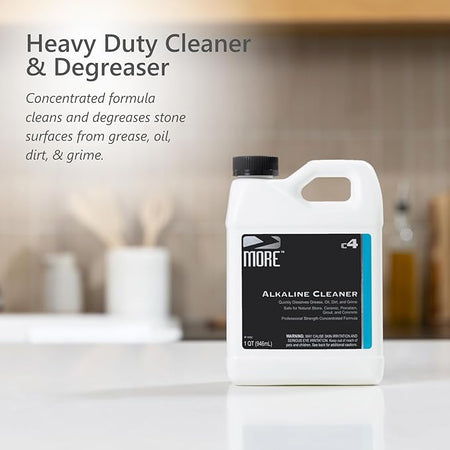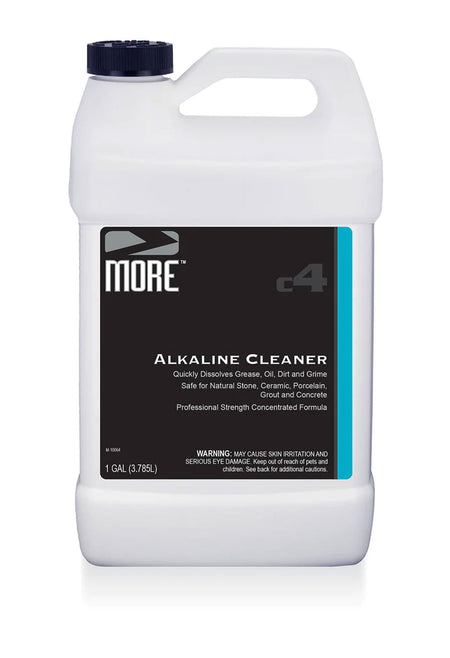 MORE® Alkaline Cleaner is a concentrated, professional-strength solution designed to clean and restore natural stone, tile, grout, and concrete surfaces. It effectively dissolves grease, oil, dirt, and grime, making it ideal for high-traffic areas and heavily soiled surfaces.