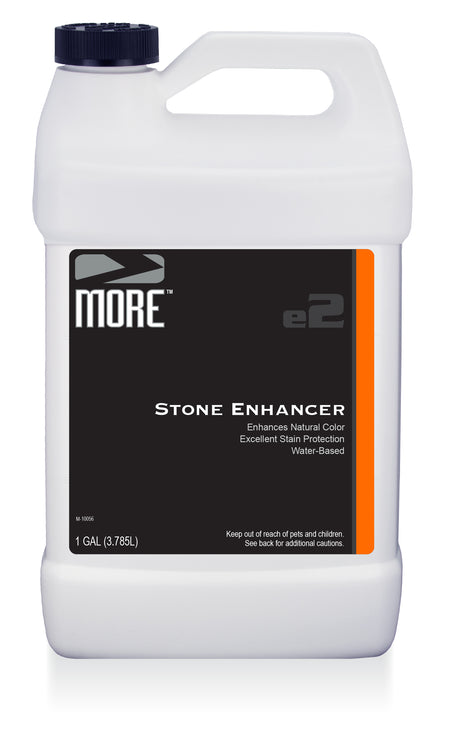 The MORE Stone Enhancer is a water-based, 2-in-1 formula designed to enhance the natural color and character of stone surfaces while providing stain protection. It deepens the color of the stone without adding gloss, leaving a natural finish.