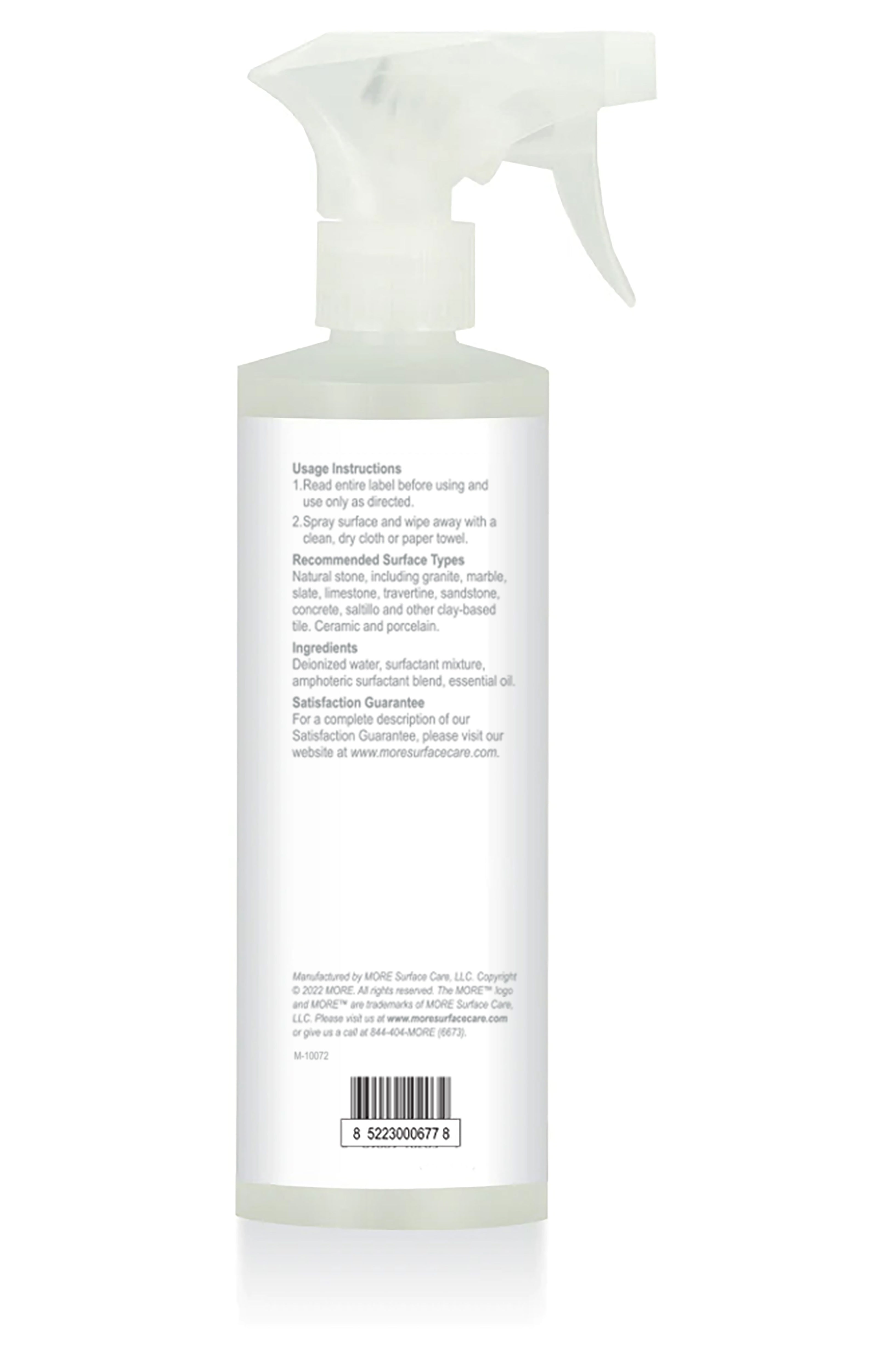 MORE® Stone & Quartz Cleaner is a 2-in-1 daily cleaner and protector formulated specifically for cleaning and protecting natural stone and quartz surfaces.